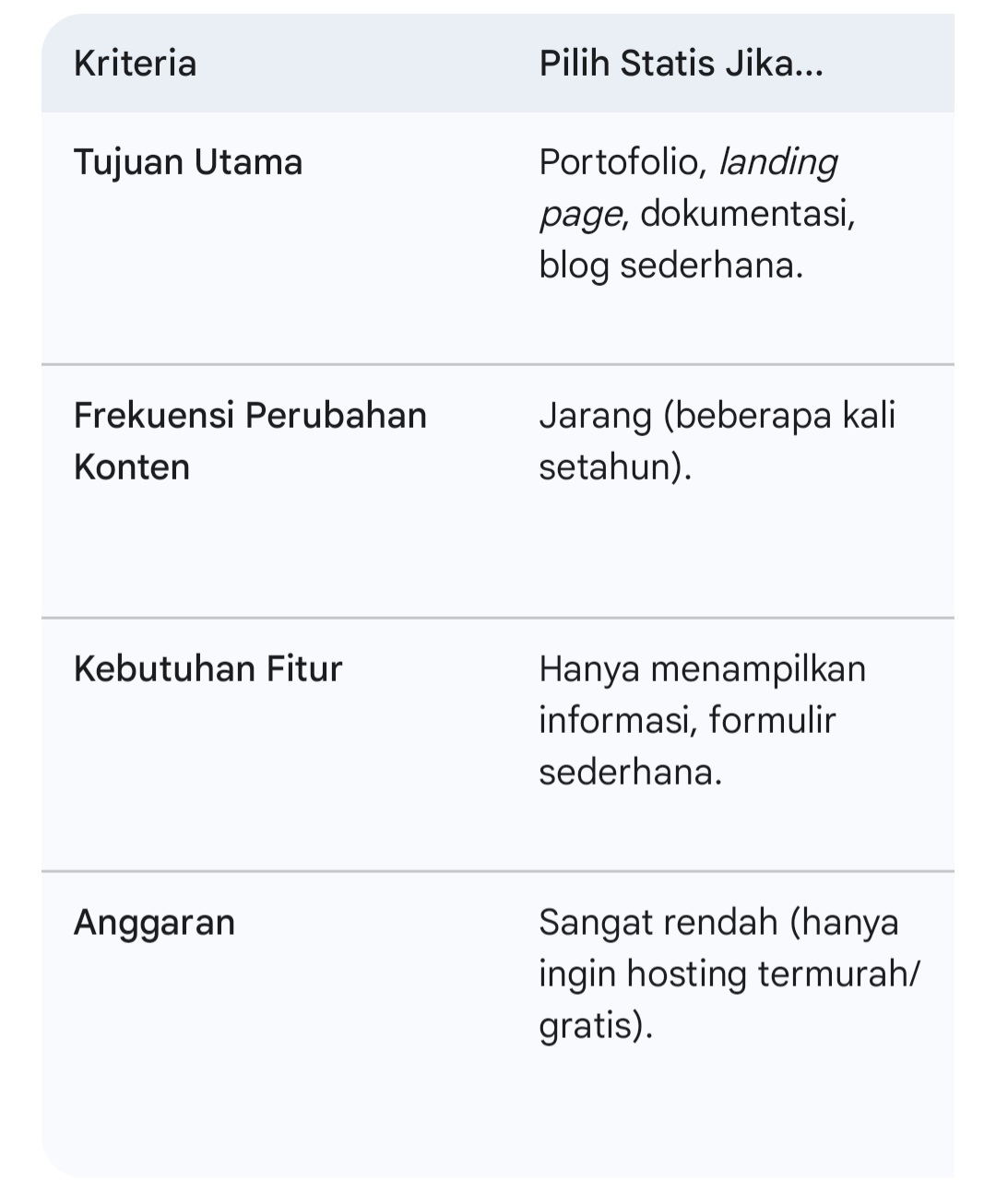 Salah satu keputusan mendasar yang harus diambil saat akan membangun website adalah memilih antara membangun website statis atau website dinamis. Sedikit sulit mungkin, karena kedua pendekatan ini memiliki filosofi, teknologi, dan manfaat yang sangat berbeda. Maka memahami perbedaan keduanya sangat penting untuk memastikan website yang Anda buat dapat mencapai tujuan bisnis atau personal Anda secara efektif dan efisien.
